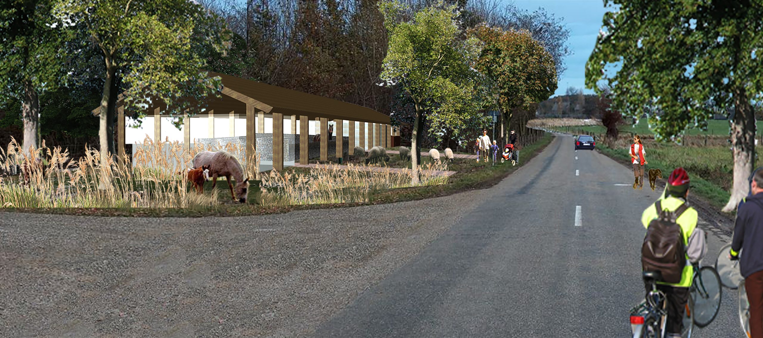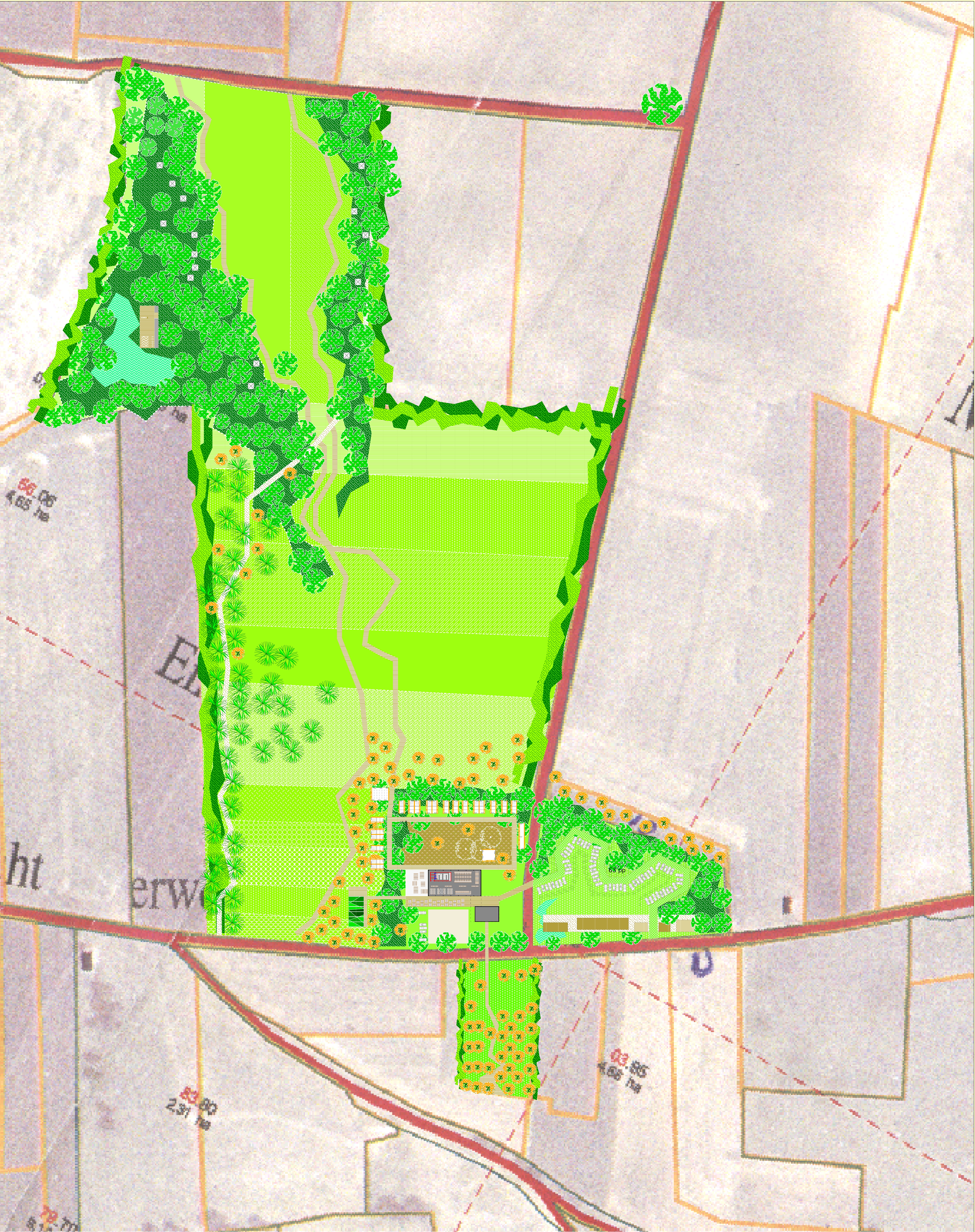 Farm “De Eikenhof” is situated at Mingersborg in Voerendaal, the Netherlands. A masterplan transforms the present situation as a farm into ‘De Eikenhof’ as a recreation estate for mind- & lifestyle-oriented guests. The site is organized in farm, fields and eco-zone.