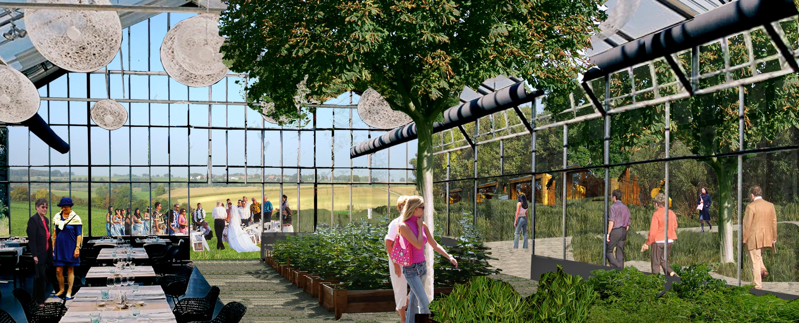 Glass house event location, organic garden